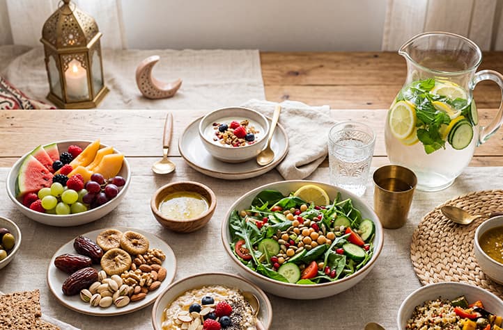 اختر الأطعمة الغنية بالألياف، وتجنب الوجبات المقلية، وحافظ على النشاط بين الإفطار والسحور.